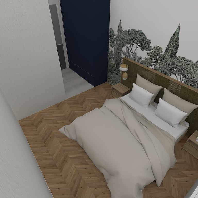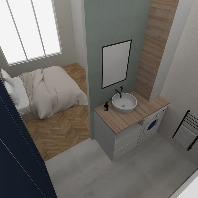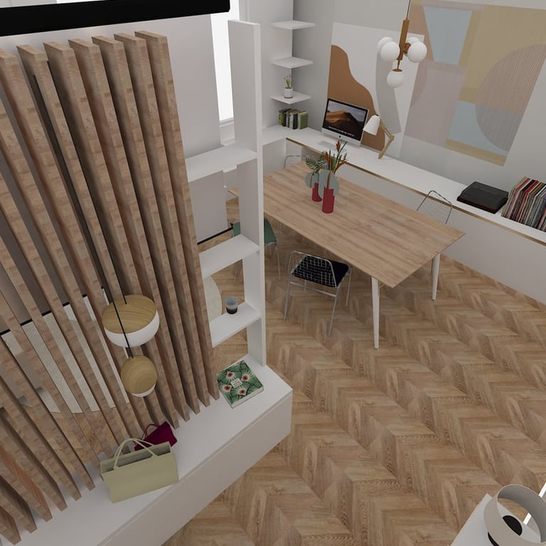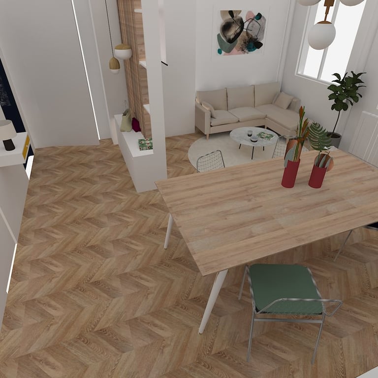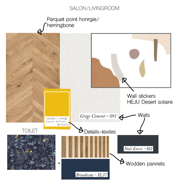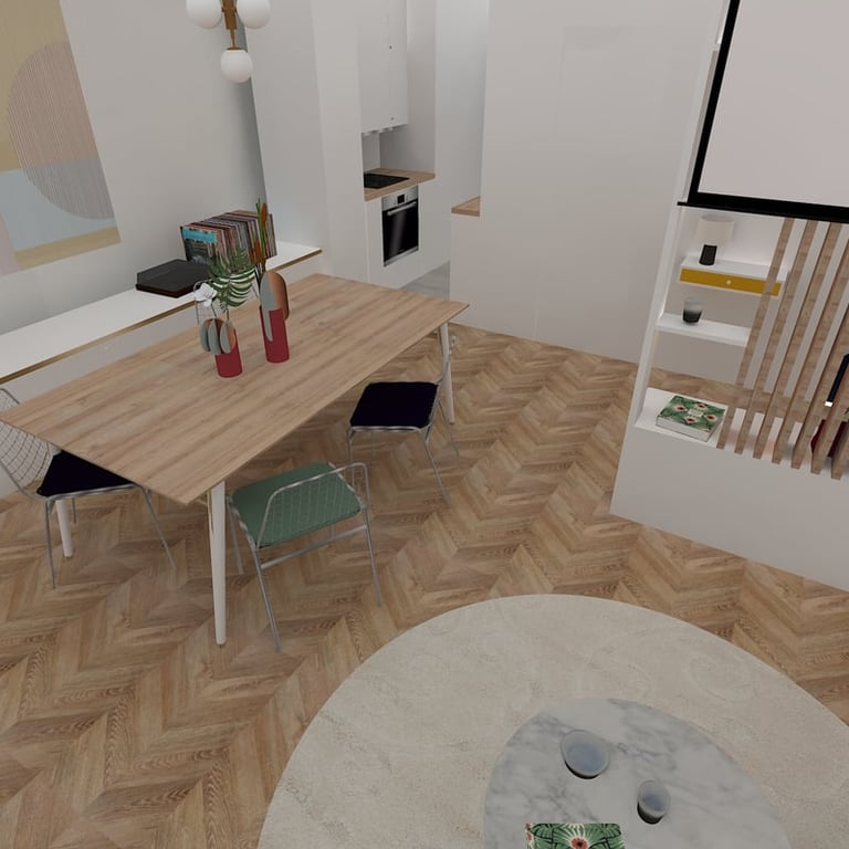 Parisian apartment non functional. The client likes soft colors, wood and scandinavian minimalist with a twist.